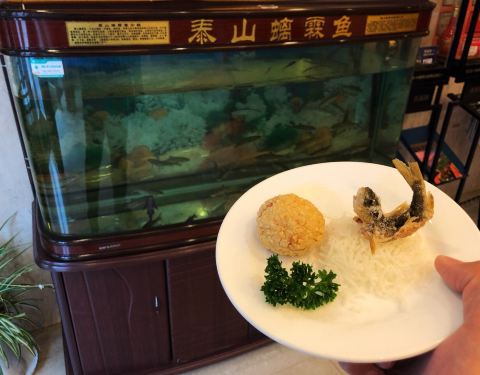 螭霖鱼!中国五大珍馐级贡鱼之一,与富春江的鲥鱼、青海湖的湟鱼、渤海的油鱼、洱海的弓鱼齐名,只产于泰山特定海拔的山间溪流,一度濒危,目前人工繁殖已大获成功。传说螭霖鱼暴晒后可完全融化(鱼刺都不剩),这倒未必,但炸过后确是极为酥脆,名不虚传。