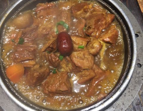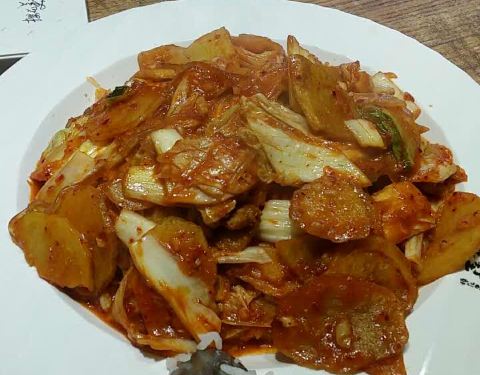本来 来东北旅行想吃地道的东北菜 可是离酒店比较远 天气有点闷热 懒得动 从酒店走到这 本来想去吃火锅 它家牛肉火锅原来是另一家分店 实在懒得走了 大概差四五百米吧 就来这家了 这家是炒菜店 点了些菜 普遍偏辣 有点油腻 服务态度特一般 点个餐也不耐烦 可能我们去的时候都一点多了 懒得干活了吧 自己倒水自己拿餐巾纸 它家饭味道还可以 年糕有点甜辣口儿 豆腐丝有点麻辣 锅包肉很油腻 鸡翅有些辣 主要是菜都油很多
