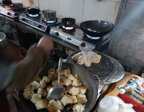 店面不起眼,但是菜品足够好吃,且食材都处理地很干净。酿豆腐则是其中的代表菜品。店招牌明显