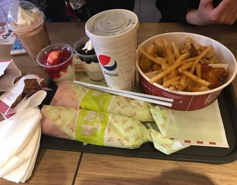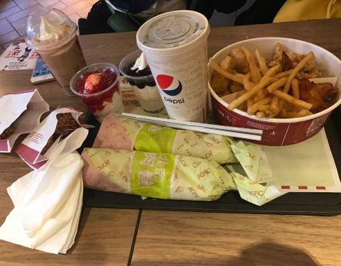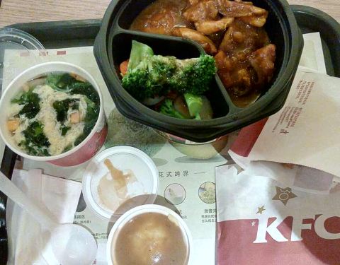 - 早上起晚酒店早餐没了,到此买的全家桶,大桶92,一家四口吃不完,味道不错,如果能少辣味和胡椒就更好了