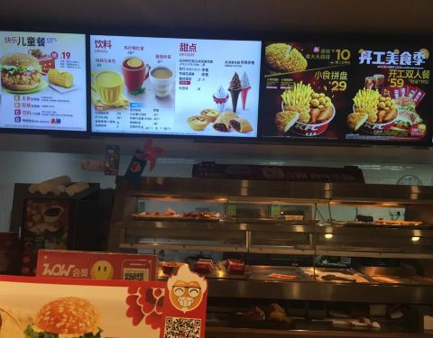 位于张家口桥西区明德南路的购物广场一楼,早上起晚酒店早餐没了,到此买的全家桶,大桶92,一家四口吃不完,味道不错,如果能少辣味和胡椒就更好了。