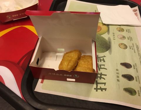 早上起晚酒店早餐没了,到此买的全家桶,大桶92,一家四口吃不完,味道不错,如果能少辣味和胡椒就更好了