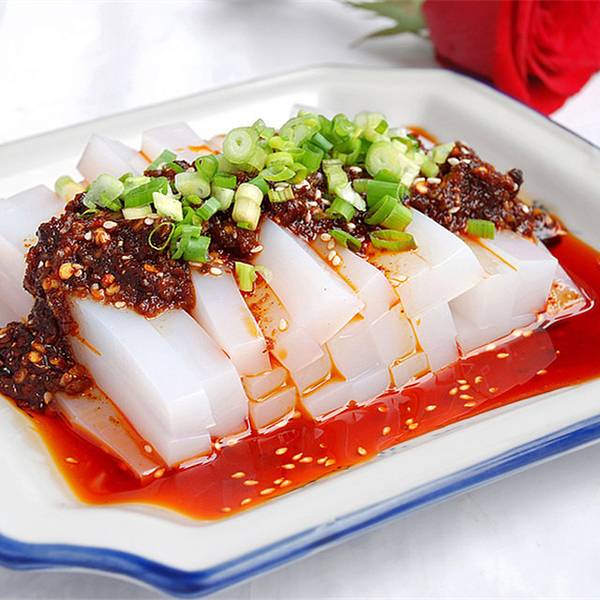 也是受了美食节目推荐的。冰粉是配着碎冰的,口感爽适。凉米线也是用了自家特制的酱料,备受当地人喜爱