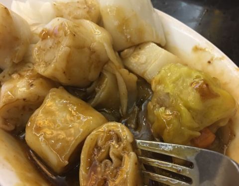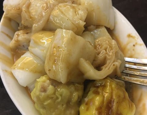 又解锁一家澳门小店。晚餐时间人还挺多。黑椒牛肉饭套餐,一个例汤,一碗米饭,一盘菜,38mop,在澳门能吃到这么实惠的套餐,真是良心价! 看朋友吃过,主要对那麻将感兴趣,到了一问人家是花生酱。也凑合了。小份烧卖肠粉双拼,量也可以,肠粉很滑,沾酱一口甜香,后来才看到还有个招牌三拼,后悔没点那个。