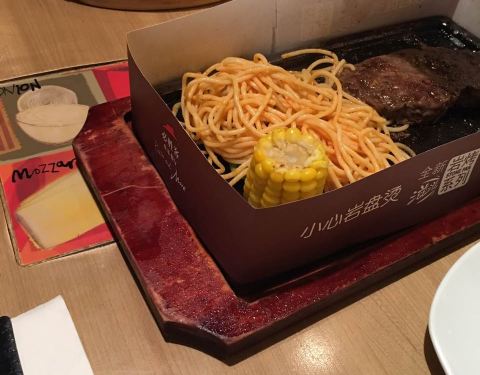 - 点的海鲜披萨和牛排,因为人多上餐有些晚,美女店长送了饮品和小吃,谢谢了,孩子很喜欢