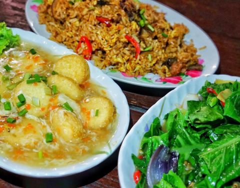 兰卡威很多餐厅点餐会遇到交流问题,在珍味海鲜村完全不用担心这个问题。中英文菜单,可以一目了然。一份豆腐,真的是久违了家乡味;三鲜汤,想必在国内的餐厅基本上都会有这道汤;马来西亚本地蔬菜是一定要尝尝的;海鲜炒饭的做饭完全是国内的炒饭做法。和国内的餐厅口味很像,清淡的吃多了,来这里尝尝家乡的味道是不错的选择。