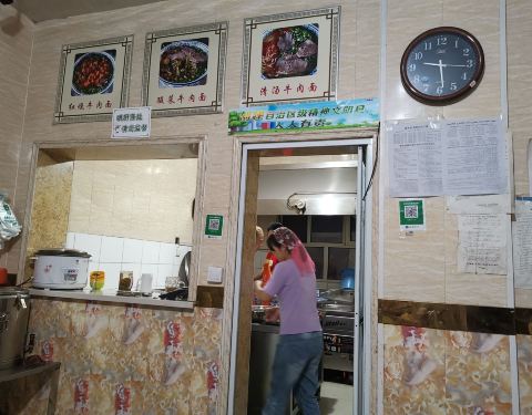 去完沙漠回来都晚上9点40分了,这家店还有不少本地人在吃面,点了红烧牛肉面,牛肉是挺多,但是肉有点老,我的口味本身有些重,但是这汤底更加咸,所以一口汤都没喝,服务员每位客人都送了一盘黄瓜丝可能知道汤底较咸,所以每位又倒了一杯茶,可以用微信结账