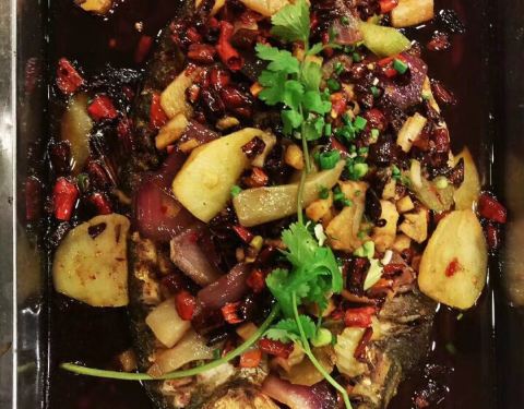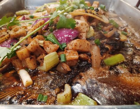 鱼上面的配菜也挺多的,也很入味。装潢也不错,不是苍蝇馆子那种。位置也好找,那条街都是吃的,很多烤鱼店