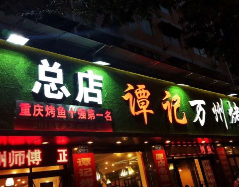 谭记万州烤鱼,老板儿和店员都嘿热情,味道巴适,价格实惠,性价比高,比心。位置也好找,那条街都是吃的,很多烤鱼店。装潢也不错,不是苍蝇馆子那种。鱼上面的配菜也挺多的,也很入味。