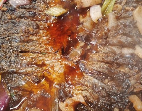 一斤四十的鱼,烤糊成这样,让我吃??厨师你来吃,我买单,真的是很失望,看着网红入榜来的,还有这个鱼香肉丝,我是个安徽人,不知道是不是重庆的鱼香肉丝就是这样的,唉,醉了