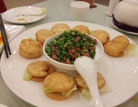 今天是周末,中午又要接待客人,选在了附近的陶然饺子城,疫情过后吃饭的人员反弹,今天中午又是爆满,连个单间都预定不上,只好在大厅里将就一下吧,饭菜还是那样中规中矩。