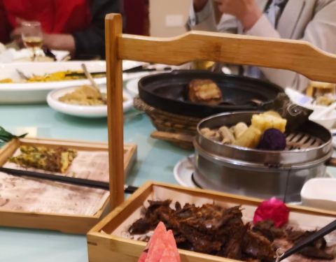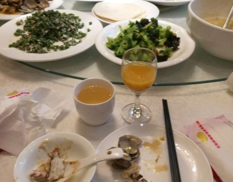 ...的人员反弹,今天中午又是爆满,连个单间都预定不上,只好在大厅里将就一下吧,饭菜还是那样中规中矩