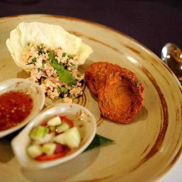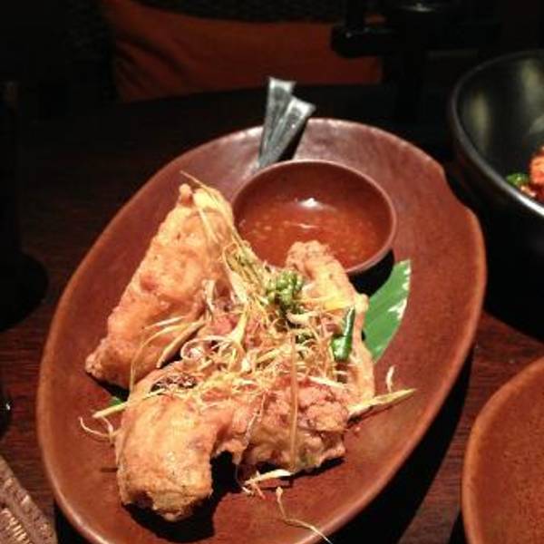 全落地玻璃窗设计风格,兼具美食美景美酒。这家的服务完全不差五星级酒店,态度极好,对小朋友们很友好的。石斑鱼用柠檬汁调味,辣中带酸,炸虾饼香酥脆软,配自制泰式酸辣酱吃,米饭可以续加的!这家听说最出色...