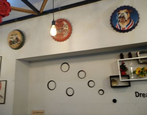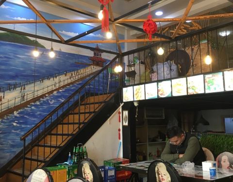 主打青岛啤酒和海鲜,海洋壁画清新夺目。