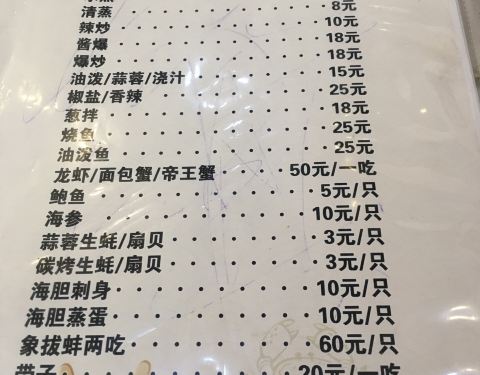 中午时间客人很少,应该都是晚上来吃的吧,他们家有加工价格表,不会乱要价,做出来的菜也很好吃,...