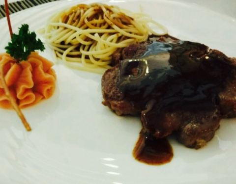 环境很清静,非常适合聊天谈事。团购的菜式很丰富,t骨牛排味道不错 。就是考制再嫩些就更好了。纸包比目鱼,很入喂,外皮非常娇嫩,非常开心。牛尾汤,浓淡适口,不错。最爱是两款主食面包,三明治和面包味道,前一款是正宗经典,而后一款的柠檬甜心更是刺激味蕾。十分愉悦的团购,有时间再光临。