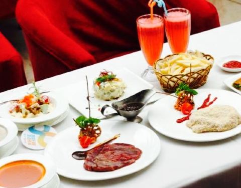 周末相约闺蜜团,三人来拔草,酒店感觉高大上,去的时间比较早,店里几乎没人,有点包场的样子,三人餐188,跟着闺蜜来体验洋气的西餐。西瓜汁,中规中矩。沙拉,有三份,其中一份被我认作成方便面,实际上是金枪鱼土豆泥沙拉,味道都一般。三份汤,我尝试的奶油蘑菇汤,奶香味不足,没啥特点。牛排,唯独最美味的就是牛排了,两份牛排,黑胡椒汁味道很赞,牛肉的肉质也好,七分熟的口感刚刚好,还是比较推荐的。披萨,火腿感觉很低端,真心不开心。最后的面包诱惑,那个奶油真心不是太好吃啊。总结一下,188的价格倒是还可以,不贵,可是菜的口感真心一般般,菜品和酒店的高大上有些不搭调,要求不高的来吃吃还是可以的,毕竟不是太贵,足够吃饱。