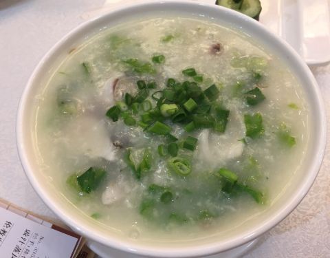 生菜鱼片粥不错,没有什么腥味,伦教糕就是我们平常吃的发糕,可惜早茶只有普洱茶跟铁观音,想喝菊花...