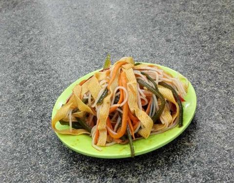 去的那天赶上周围小区都停电,这家店人爆满。叫号取面片,足足等了五十分钟才取到面。店里有免费的小菜自取