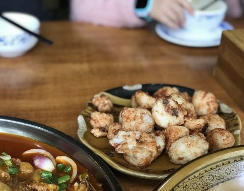 此茶泡饭并不是真正意义上的茶泡饭,而是一家地地道道的江湖菜馆子,佛图关地铁站出来,往坡上走200米就到了,选址闹中取静,江湖菜。一个是份量足。一个是价格便宜!他家刚好都占齐了,半边鱼尤其推荐!一条鱼切成两半!像是我们那的鱼酷烤鱼的味道!香辣口味又香又辣。那个南瓜烙还以为是份甜品呢!结果好大香甜酥脆特别好!酱芋儿也好吃!像小土豆其实是芋头。酱香味的。推荐你来,这一家没有茶泡饭的茶泡饭!