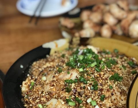 茶泡饭 地址:渝中区嘉陵新路45号 食:【拔丝芋儿】 【半边鱼】 【芒果酒】 在可以坐轻轨2号线在李子坝站下,然后沿着小路一路走到这,期间可以边走边拍;也可以直接坐轻轨2号线到佛图关站下,如果不是因为位于《从你的全世界路过》取景点江畔寻花 咖啡小筑的对面,是很容易错过的。 因为下边的李子坝梁山鸡必须整鸡点餐,两人无法消耗那个量,就继续往上面走看看有什么吃的,结果就遇见了李子坝三绝之一——闻名在外的茶泡饭,据说冯小刚导演曾经光顾过这里。虽然叫“茶泡饭”,但是这里的饭和茶其实没有任何关系。 同样是招牌菜,我们只推拔丝芋儿,而且运气很好的我们吃到了当天的最后一份,芋儿外面酥脆,里面软糯,裹上恰当好处的甜酱,口感十分惊艳,强烈推荐。意外的品尝了手工酿造的果酒后,点了半斤芒果酒,果味大于酒味,在辣面前显得异常爽口,单喝又不怎么腻。以一杯奶茶和一碗小面结束山城之旅