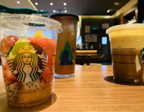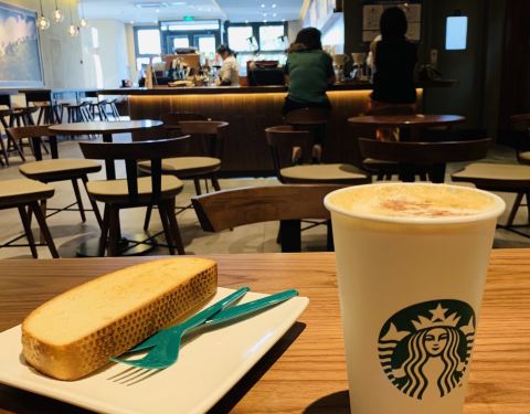 金元宝的星巴克咖啡,从停车场和商场内部都可以进入,本人最喜欢星冰乐。