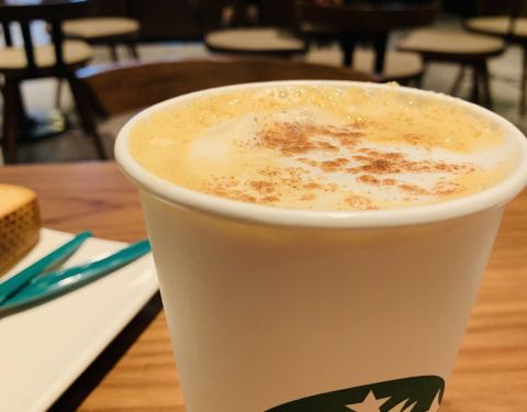 这是为大家绝对的第三种星巴克饮品,也是中秋的新款,南瓜丝绒拿铁,英文简称PSL,这是一款高糖...