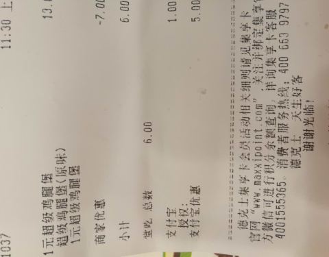 说好的鸡腿堡变成土豆堡了,1元活动省钱?
