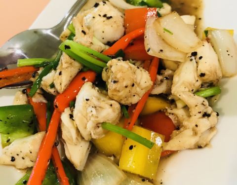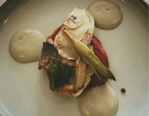 油炸海鲈鱼配青葱红椒以及罗望子和柠檬草浇汁(Deep-fried sea bass with shallots and red chillies in tamarind and lemongrass sauce)