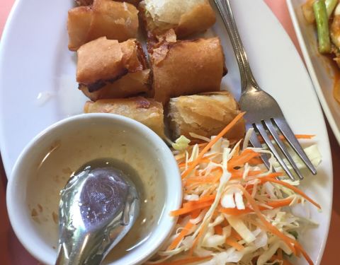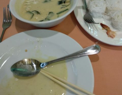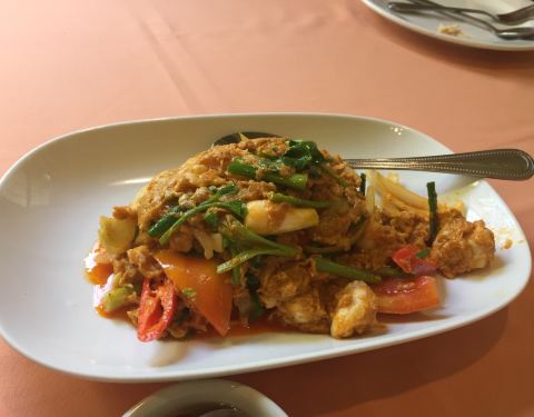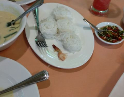 本地人来得多,环境也很干净,作为初次尝试泰国菜的话还是挺不错的选择,烤鸡略微有点柴,口味也是偏重的,铁板大虾和想象的有点不一样,是那种虾仁做的,不是新鲜的大虾。