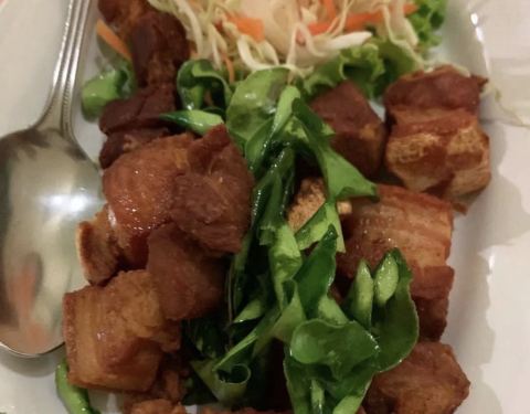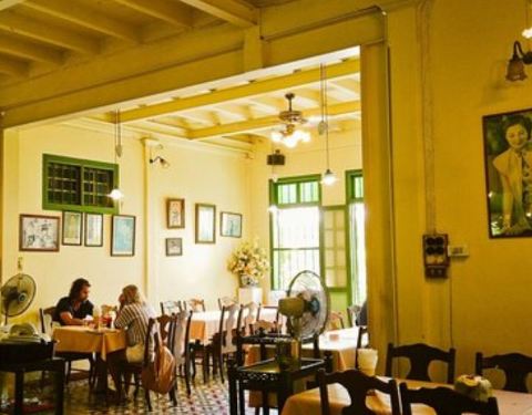 从芭东海滩开摩托车去王权,逛完找到这么一家很有风格的泰餐店,从里到外保留了原来的风格,绿色的玻璃、复古的吊灯,木质楼梯,还有麻雀会飞进来找食,墙上挂着一些家里人合影的黑白相片,历史感很强,其中也少...从芭东海滩开摩托车去王权,逛完找到这么一家很有风格的泰餐店,从里到外保留了原来的风格,绿色的玻璃、复古的吊灯,木质楼梯,还有麻雀会飞进来找食,墙上挂着一些家里人合影的黑白相片,历史感很强,其中也少不了国王得相片。点了一条不知名的鱼清蒸的,一份虾饼 虾仁的个头很大,一份海鲜炒饭 ,味道都很泰国,个人很喜欢比芭东海滩边上那些大同小异的海鲜大餐好多了