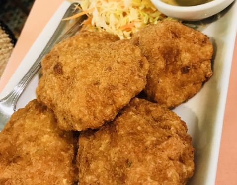 泰式虾饼的味道很不错哦,很大一块,里面都是虾粒,这个吃的很满足的哦,那个咖喱虾包蛋味道很不错哦,蛋和虾一起吃很棒的感觉。