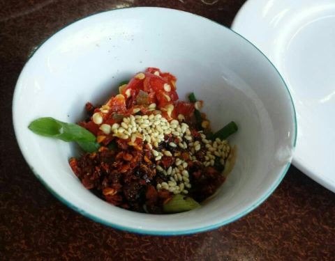 - 酥油茶是很大的一壶,要了甜味的,好喝。 一行5个人团了个6-8人餐,非常丰富的配菜