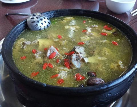 一锅热腾腾的排骨火锅,驱走身上的寒意,品尝当地的特色菜,嗯,真的不错