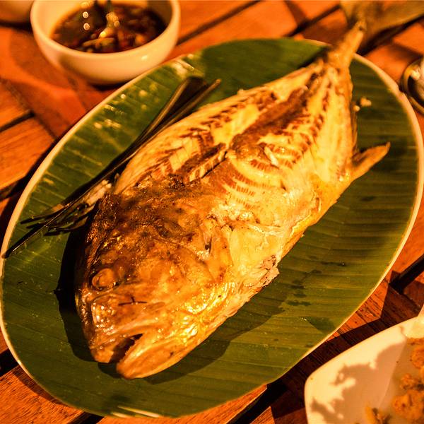 来到吉普怎能忍住不去寻觅一个美食与盛景并存的地方呢!隐藏在Chalong 码头附近的Kan Eang@Pier Restaurant,又被称为“must restaurant to visit”,是吉普岛上的一间久负盛名的海鲜餐厅,拥有着无与伦比的海景...来到吉普怎能忍住不去寻觅一个美食与盛景并存的地方呢!隐藏在Chalong 码头附近的Kan Eang@Pier Restaurant,又被称为“must restaurant to visit”,是吉普岛上的一间久负盛名的海鲜餐厅,拥有着无与伦比的海景和令人回味无穷的地道美食,是一个总会让人不自觉地带着愉悦的心情就餐的地方。临近傍晚时分的Kan Eang又呈现出了另一种美妙,别致典雅的装饰,昏黄的光线、温馨的色调,伴着清新的海风,舒愜、浪漫顿时涌上心头。坐在最靠近大海的位置,靠近金色的沙滩,望着波光粼粼的海面,闪烁的灯光洒落海面,好似一片熊熊燃烧着的火海,冲击着我们在座的每个人的视觉。夜色朦胧,灯火阑珊,一边享受着海风和美食,一边还能听到海浪的声音,Kan Eang@Pier确实是一个令人赞叹的所在。这里的食物亦是不必多说,不仅菜单非常丰富,而且每样食物也都很精致,清蒸鱼、腰果炒鸡肉等都是味道极佳的泰国菜。值得称赞的是这里的服务也很周到,上菜速度很快,服务员也都是非常热情的。晚上还会有很精彩的爵士乐演奏,在这里可以充分满足大家的咸咸的海风情怀,是一场不可错过的浪漫。