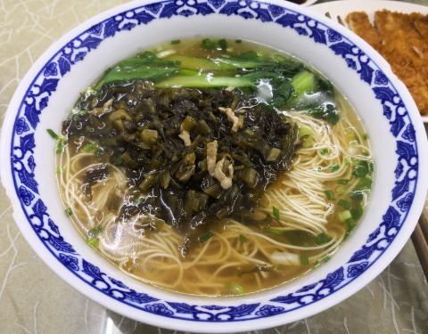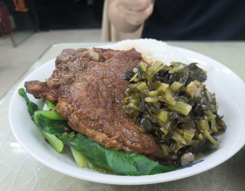 果然面是招牌,细面很劲道,好吃。 红烧大排饭,除了大排很赞,居然雪菜也很好吃