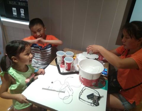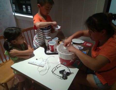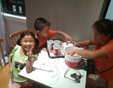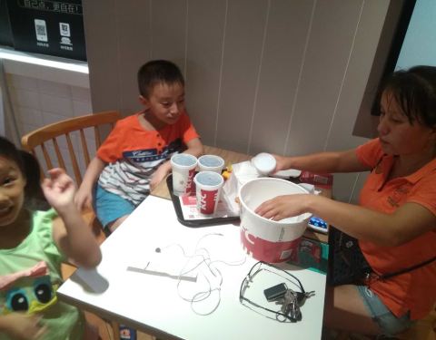 今天带两个小朋友一起就餐噢!小朋友好开心啊!
