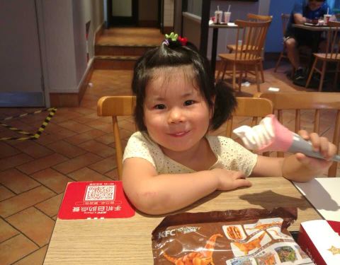 点了一个双色冰激凌筒、奥尔良烤翅宝宝非常喜欢