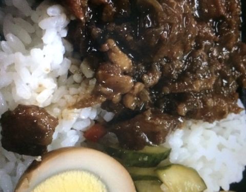 卤肉饭肥瘦均匀,肥而不腻,搭配小菜做午餐是不错的选择!