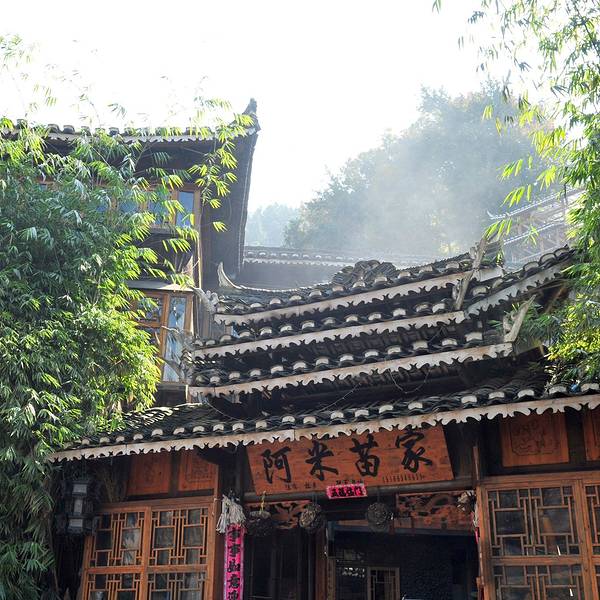 阿米苗家,出了居住的客栈到了饭店,一转头就看到一缕阳光洒在阿米苗家的店铺上。可惜没有拍好,只有一瞬间。