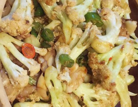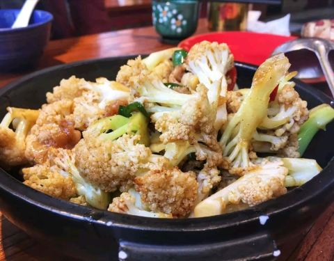 出菜速度略慢,所以一定要趁早,并且出品也很不稳定,运气很重要。 酸汤焦溜丸,胡椒味比较重,喝起来很酸辣爽口,丸子没有平时炸的脆,略有些粘牙。 干锅花菜,厨师对口感把握很到位,里面干煸的五花肉片特别香...