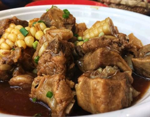 干锅花菜,厨师对口感把握很到位,里面干煸的五花肉片特别香。 玉米烧排骨,味道还不错,排骨烧的入味