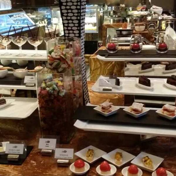 装修很堂皇,环境好评。 大大的落地窗玻璃,窗边风景比较好,不过位置好的地方基本要预定,服务员也很周到热情。 菜品种类太少,饮品种类也少,中餐西餐选择都不多,唯一的亮点反而是甜品。甜品柜台的小哥也很nic...装修很堂皇,环境好评。 大大的落地窗玻璃,窗边风景比较好,不过位置好的地方基本要预定,服务员也很周到热情。 菜品种类太少,饮品种类也少,中餐西餐选择都不多,唯一的亮点反而是甜品。甜品柜台的小哥也很nice,每一道都耐心介绍口味,甜品的颜值与味道并存,吃再多也不腻。 肉制品方面的做的不太好,鸡肉相对较老,炸鸡块都嚼不动,以及晚餐竟然只有一种种类的汤供选择。虽然热菜等略少,但好在海鲜品质比较高。