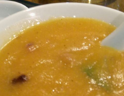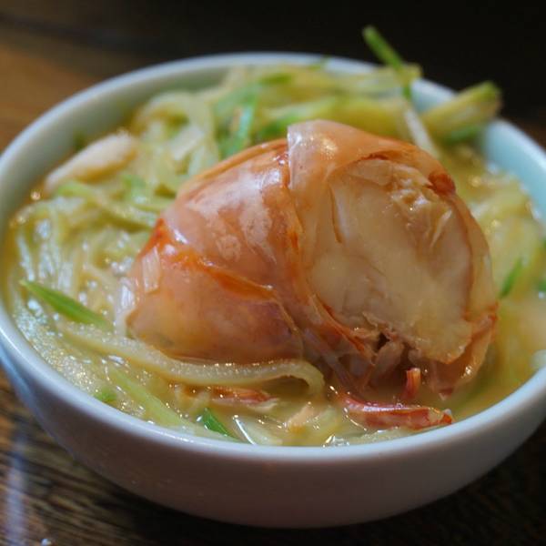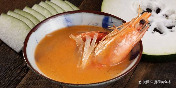 海捕大虾 据说只有野生的才能长到海捕大虾的个头。尝试了青岛本地的做法,用来做汤。青皮萝卜和海捕大虾为主料,汤底很浓,已经吸收了大虾本身的味道,萝卜清甜,汤也好喝。