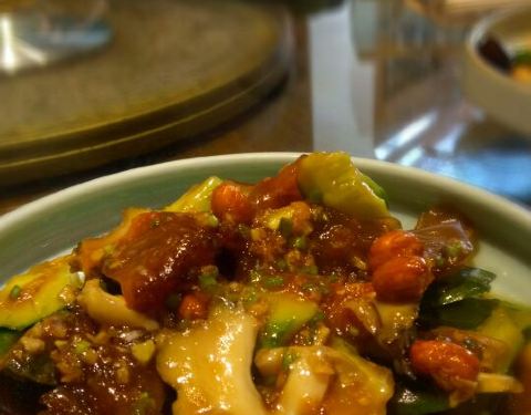 青岛铭家小院私家菜馆算是一个本地菜评价较好的店,别墅小院子环境不错,就选择在树荫下点几个菜尝一尝。葱烧海参虽然属于胶东菜,我对北方菜系不算了解,腌制的蟹钳每次到青岛都会试试,算是宵夜下酒菜一样的东...青岛铭家小院私家菜馆算是一个本地菜评价较好的店,别墅小院子环境不错,就选择在树荫下点几个菜尝一尝。葱烧海参虽然属于胶东菜,我对北方菜系不算了解,腌制的蟹钳每次到青岛都会试试,算是宵夜下酒菜一样的东西,椒盐皮皮虾夸奖一下,味道没问题,主要是把脚和脑袋都剪了,一段一段的再也不愁剥了。墨鱼肠是他们的特色,里面还有墨鱼肉,吃起来有点像广味香肠味道但是有Q脆的口感,据说是他们创造的。