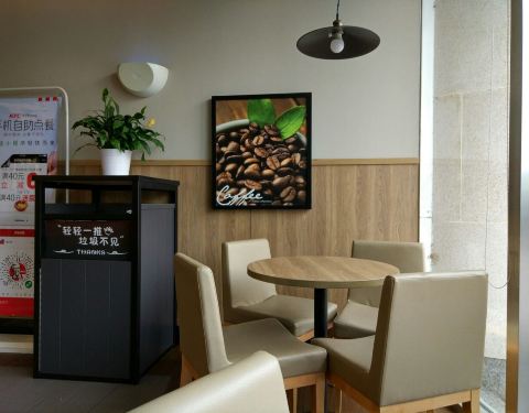 位于文化中心彩悦城一层的肯德基经常光顾,成为六日早餐的首选之地。当然旁边银河购物地下一层的那间,因为营业时间问题就不怎么去了,因为早餐时间无法开门。当然直线距离200多米就有两家肯德基也是罕见。 经常...位于文化中心彩悦城一层的肯德基经常光顾,成为六日早餐的首选之地。当然旁边银河购物地下一层的那间,因为营业时间问题就不怎么去了,因为早餐时间无法开门。当然直线距离200多米就有两家肯德基也是罕见。 经常早餐时间前往,通过自助点餐的APP基本上不用等待,除非太早了刚开始有那么几分钟的等待。建议使用自助点餐,一个是方便一个是18元送东西,虽然肯德基价格比麦当劳便宜不少了,但是点满18也是挺容易的。 早餐选择多,只不过也都吃过来了,对比旁边的麦当劳肯德基发展了更符合中国人胃口的早餐,最近的饭卷就是一个典型,但是饭卷的缺点就是成型差,饭粒很容易掉出来,甚至整块整块的掉出来。所以个人更是倾向于法风烧饼(热着酥脆,凉了软酥味道都好)和各种帕尼尼,而鸡肉帕尼尼又让帕尼尼的价格能控制在10元内也是很不错的。 正餐时间段这家肯德基很忙碌,彩悦城的受众主要是孩子和家长,因此肯德基忙碌就不足为奇了。这时候强烈建议选择自助点餐,真的非常方便,因为点餐排队的人明显超过取餐排队的长度,到时候就有体会了。 环境和服务这家肯德基都是不错的,不过由于图片都是早餐时段拍摄的,所以给人展现的都是最悠闲最清静的时候的样子啦!