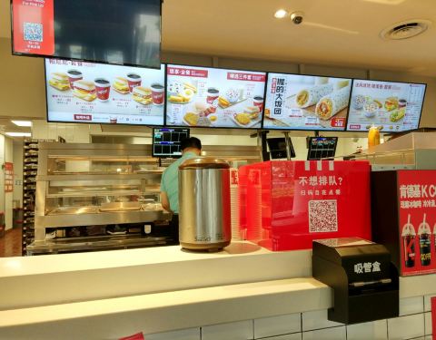 位于文化中心彩悦城一层的肯德基经常光顾,成为六日早餐的首选之地。当然旁边银河购物地下一层的那间,因为营业时间问题就不怎么去了,因为早餐时间无法开门。当然直线距离200多米就有两家肯德基也是罕见。 经常早餐时间前往,通过自助点餐的APP基本上不用等待,除非太早了刚开始有那么几分钟的等待。建议使用自助点餐,一个是方便一个是18元送东西,虽然肯德基价格比麦当劳便宜不少了,但是点满18也是挺容易的。 早餐选择多,只不过也都吃过来了,对比旁边的麦当劳肯德基发展了更符合中国人胃口的早餐,最近的饭卷就是一个典型,但是饭卷的缺点就是成型差,饭粒很容易掉出来,甚至整块整块的掉出来。所以个人更是倾向于法风烧饼(热着酥脆,凉了软酥味道都好)和各种帕尼尼,而鸡肉帕尼尼又让帕尼尼的价格能控制在10元内也是很不错的。 正餐时间段这家肯德基很忙碌,彩悦城的受众主要是孩子和家长,因此肯德基忙碌就不足为奇了。这时候强烈建议选择自助点餐,真的非常方便,因为点餐排队的人明显超过取餐排队的长度,到时候就有体会了。 环境和服务这家肯德基都是不错的,不过由于图片都是早餐时段拍摄的,所以给人展现的都是最悠闲最清静的时候的样子啦!
