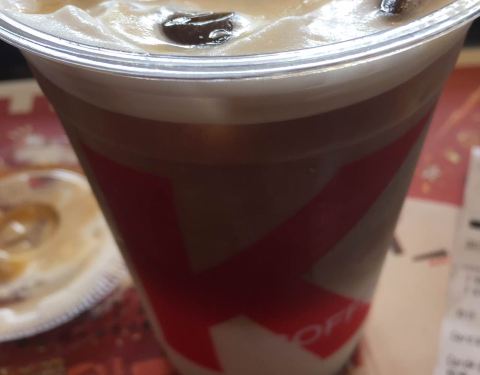 有没有人跟我一样进肯德基休息必须点东西,不点东西不好意思进来坐着。其实我只是为了找个地蹭空调而已我要的香草,店员给我点的榛果,算了吧,店员没把冷的点成热的我就超级知足了。反正我只是想找个地蹭空调。感觉还是原味加糖咖啡更好喝。不知道原价多少,但是会员价还是很好的。。
