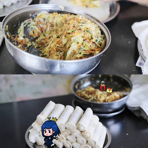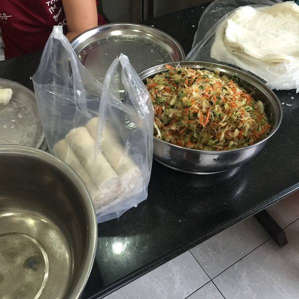 要说阿明春卷为什么有名,因为人家都是“炸春卷”,阿明春卷是“非油炸更健康”,下面这就是春卷成平...