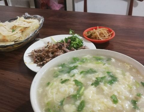 已经改名叫杨鹏羊糁羊汤馆,不过味道还是非常地道,羊糁和羊汤是分开煮的,羊肉也分一般羊肉、剔骨肉、羊杂等,辣椒酱辣度适中,油饼是现烙,早上一般需排队。